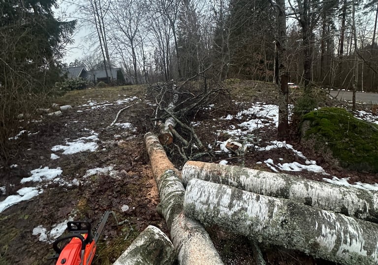 Kaadamme puita turvallisesti ja ammattitaidolla myös ahtaammissa pihoissa. Tarvittaessa huolehdimme myös oksien ja runkojen siivouksesta sekä poisviennistä.